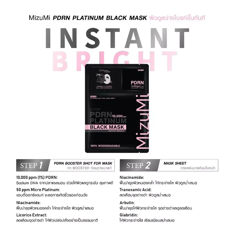 ชุดทดลอง MizuMi PDRN PLATINUM BLACK ITRIAL SET BRIGHT MOIST Charcoal Mask ผลิตภัณฑ์จากประเทศไทย