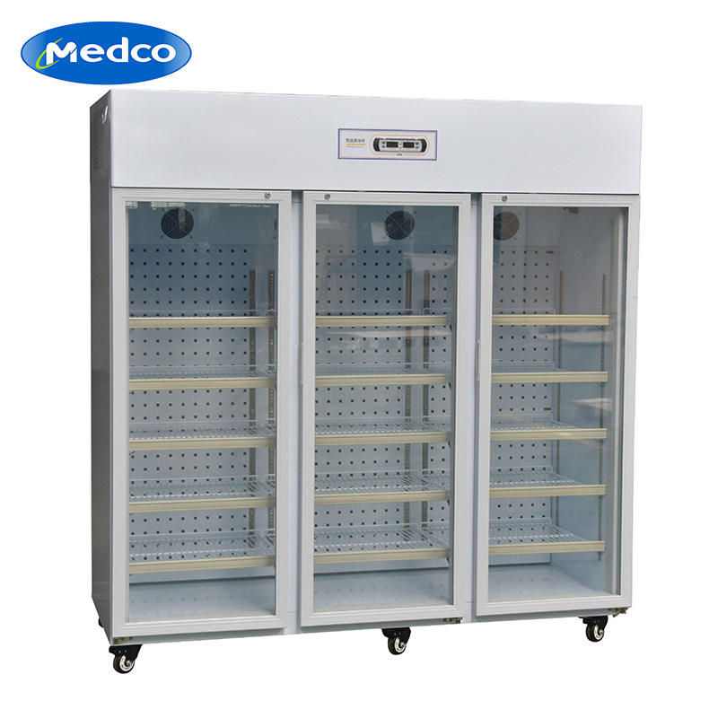ตู้เย็นทางการแพทย์สามประตู Mk L1160 1360L อุณหภูมิ 2-8 องศา สำหรับเก็บยา วัคซีน ใช้ในห้องปฏิบัติการ