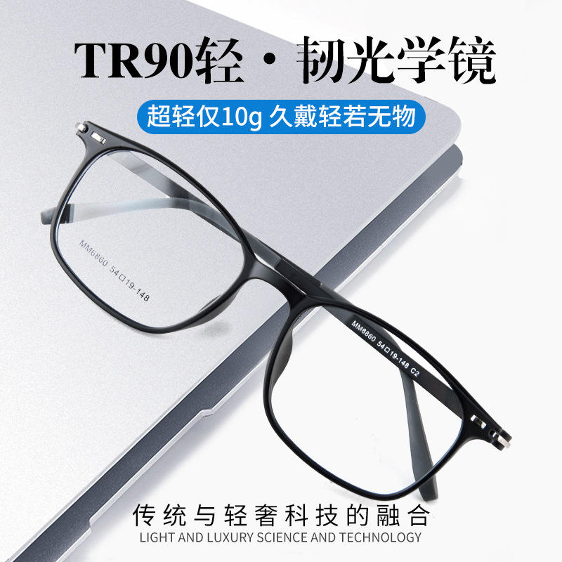 กรอบแว่นตาสี่เหลี่ยม Mm6860น้ำหนักเบา Tr90เต็มกรอบสีฟ้าน้ำหนักเบาป้องกันแสงสำหรับทุกเพศเลนส์เรซินต้นกำเนิด dyang