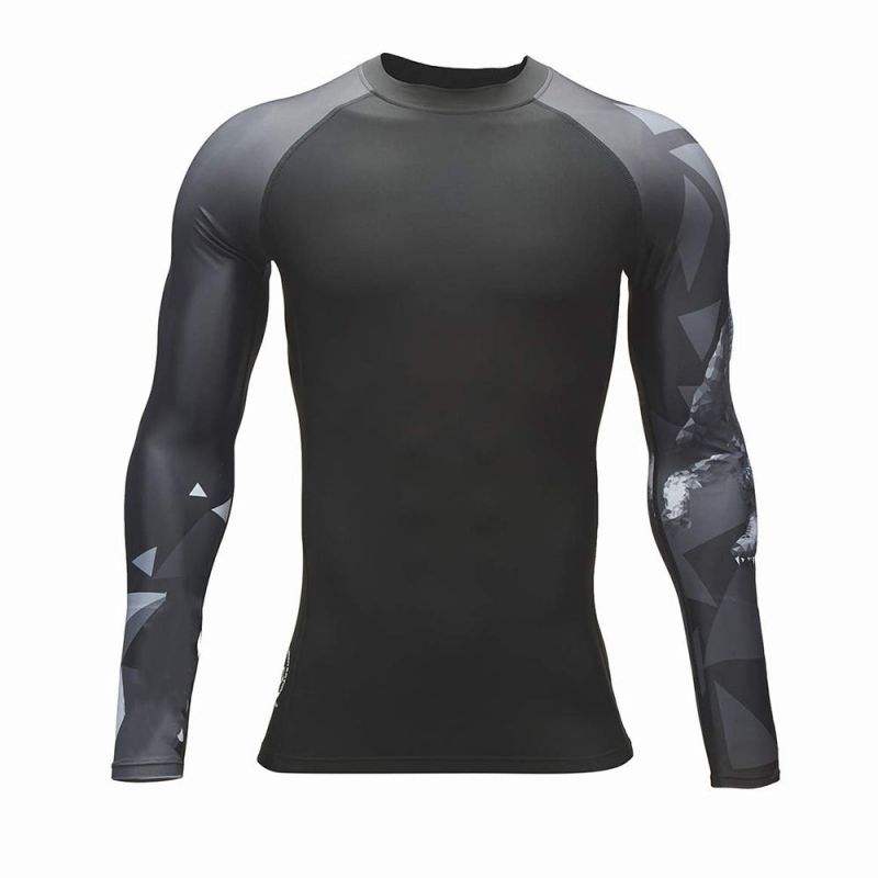 เสื้อยืด MMA สำหรับผู้ชาย แขนยาว ป้องกันการเสียดสี เหมาะสำหรับมวยไทย ยิวยิตสู บราซิลเลียนยิวยิตสู เสื้อรัดกล้ามเนื้อสำหรับออกกำลังกาย ฟิตเนส ยิม ชกมวย