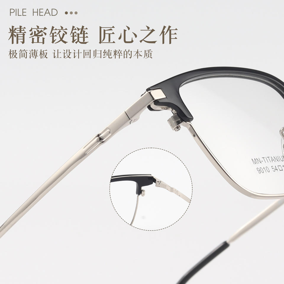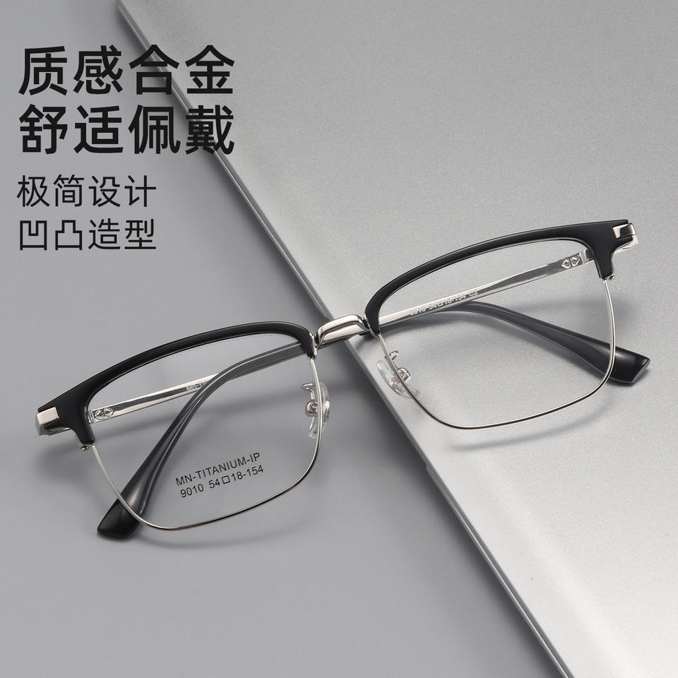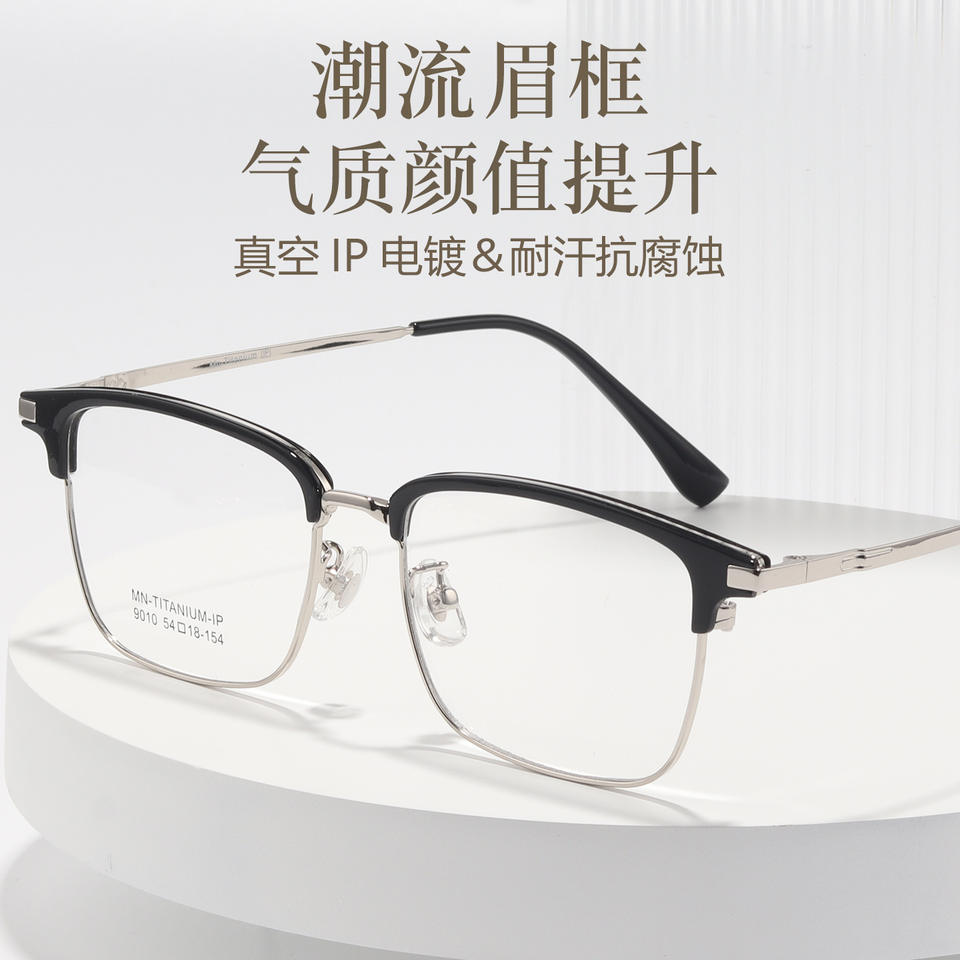 กรอบแว่นตาผู้ชายทรงสี่เหลี่ยม Mn-Titanium-Ip รุ่น 9010 น้ำหนักเบา เลนส์พลาสติกแบบเต็มกรอบ