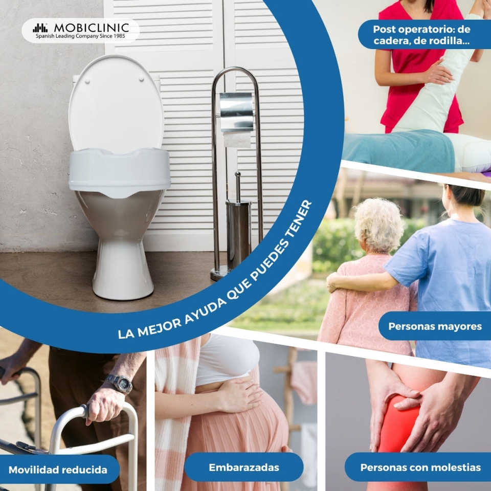 Mobiclinic ลิฟต์ที่นั่งในห้องน้ำสีขาวไททันขนาด14ซม. ไม่มีฝาปิดอุปกรณ์บำบัดฟื้นฟูสมรรถภาพสูงถึง160กก.