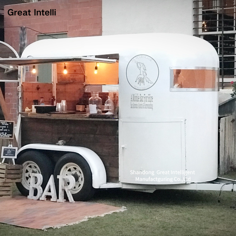 รถเทรลเลอร์ขายอาหารแบบเคลื่อนที่ได้รถขายน้ำผลไม้รถลากสำหรับขายอาหารม้าร้านค้าบนล้อ