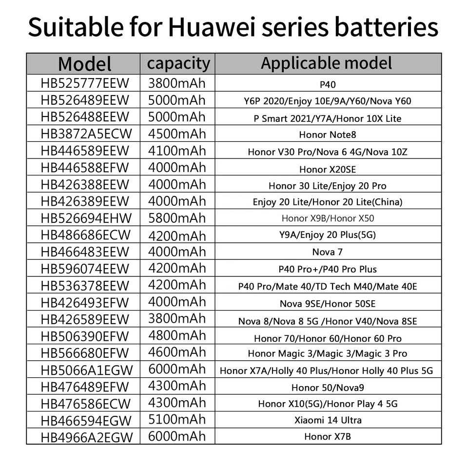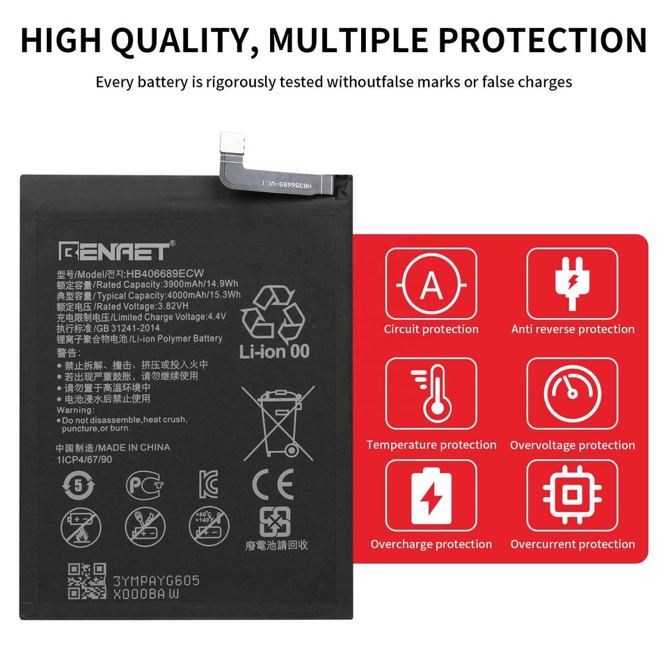 Mobile Battery for Huawei HB406689ECW Y7 Prime/Honor 8C/Y9 2018/Enjoy 7 Plus 4000mAh Real Capacity Mobile Phone Battery Stock