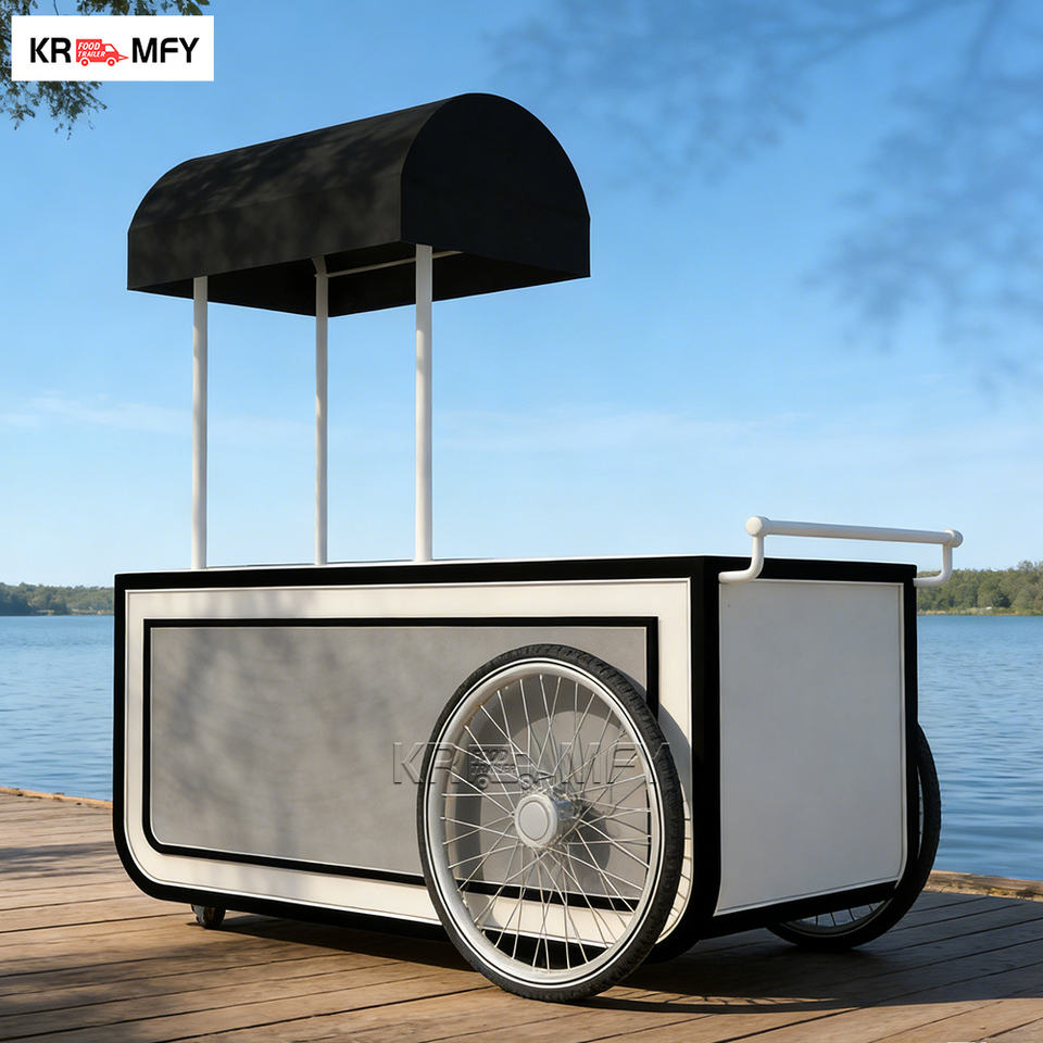 รถขายกาแฟเคลื่อนที่แบบสามล้อ ดีไซน์ใหม่ สำหรับเครื่องดื่มแบบพกพา ไอศกรีมแบบอิตาเลียน รถเข็นแบบเข็นมือ