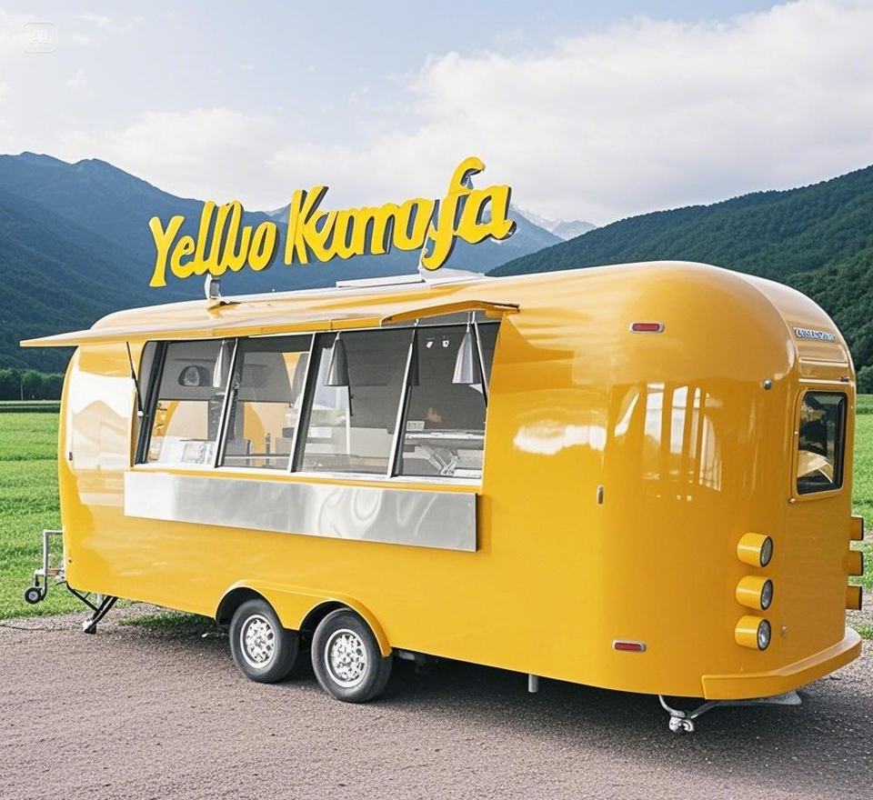 รถลากสแตนเลสสำหรับจัดเลี้ยงกาแฟผู้ตั้งแคมป์ขนมเคลื่อนที่