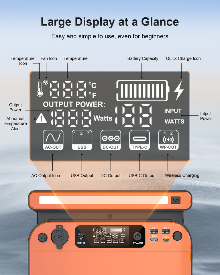 Wireless Charging, Remote Control, Type C, Flashlight, jump starter, RV Port, Cigar Lighter, Air Compressor