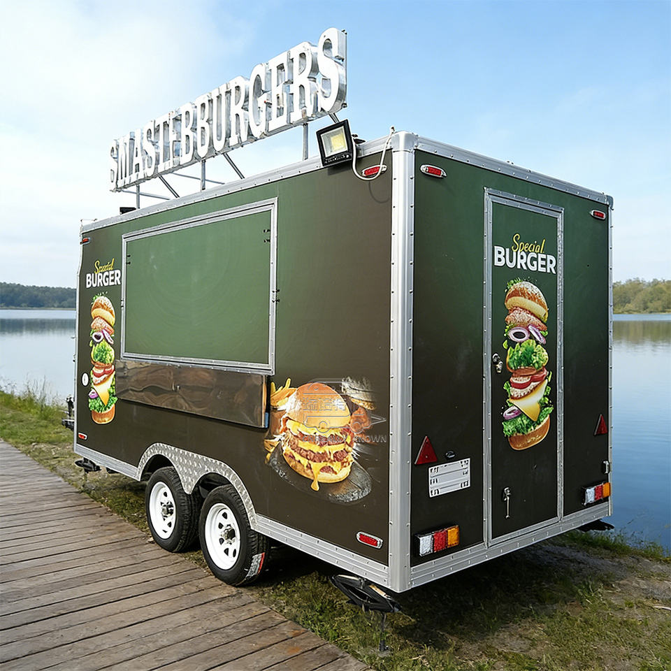รถขายอาหารเคลื่อนที่พร้อมอุปกรณ์ครัวสำเร็จรูป รถพ่วงขายขนม รถขายชานมไข่มุก