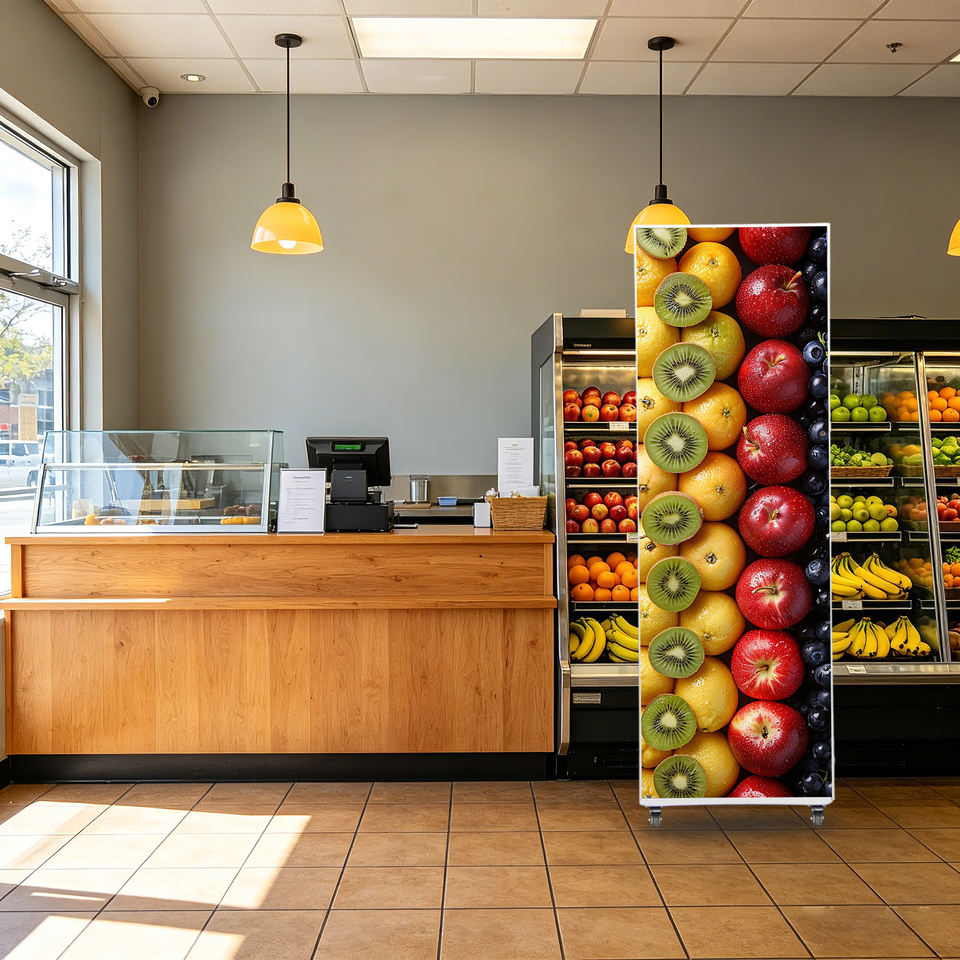 จอแสดงโปสเตอร์ LED ตั้งพื้นแบบเคลื่อนที่ | 500nits ป้ายดิจิตอล P2.0ความสว่างสูงในร่ม/กลางแจ้ง IP65กันน้ำ7680Hz