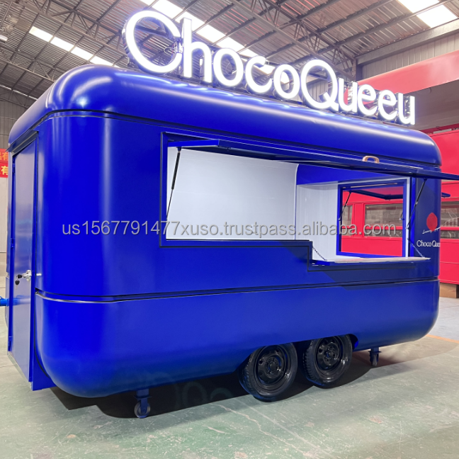 เครื่องพ่วงอาหารเคลื่อนที่สำหรับขายปลีกขนมขบเคี้ยวผลิตภัณฑ์นมขนมฮอทด็อกทำจากบาร์บีคิวทำจากข้าวโพด