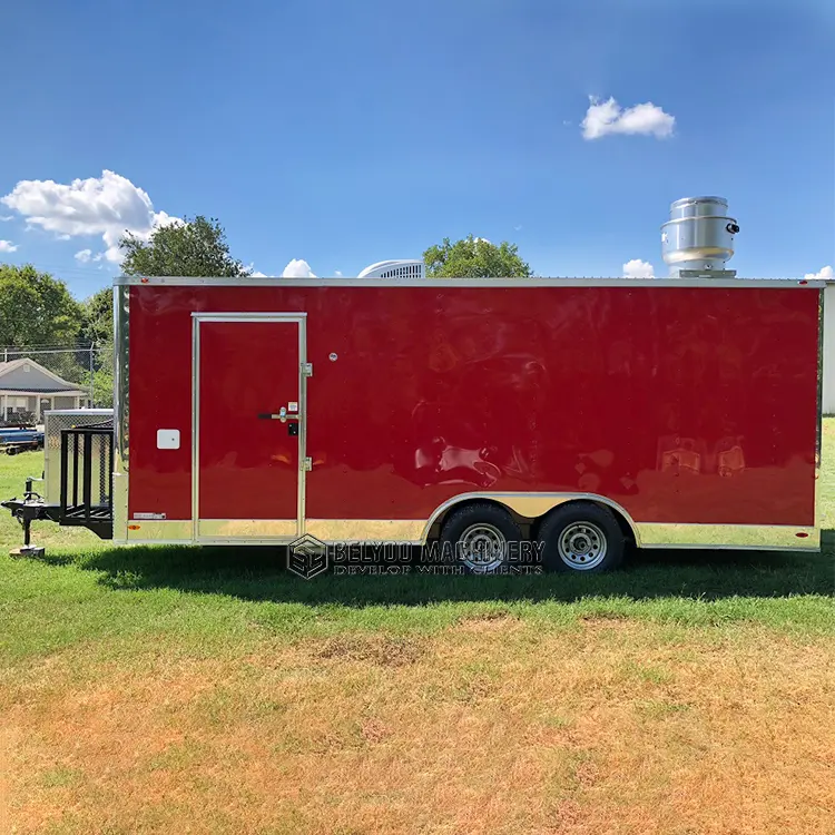 รถพ่วงขายอาหารแบบเคลื่อนที่ขาตั้งรับผลิตอาหารบนถนนสำหรับจัดเลี้ยงกลางแจ้ง