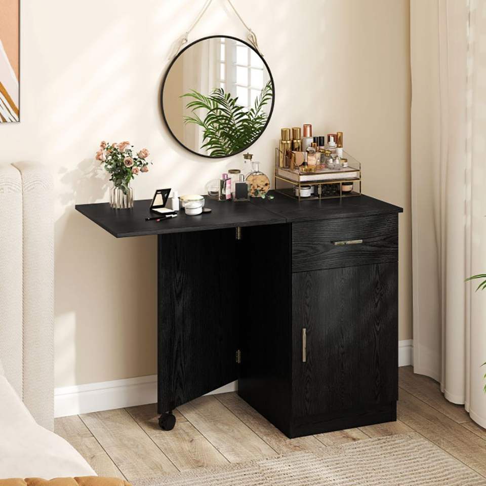 โต๊ะคอมพิวเตอร์พับได้สำหรับสำนักงานเคลื่อนที่ พร้อมลิ้นชักและตู้เก็บของ โต๊ะคอมพิวเตอร์ที่สะดวกสบาย