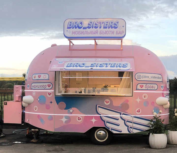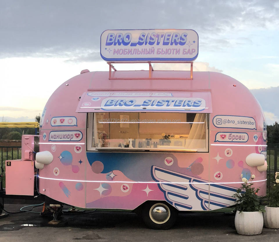 รถขายอาหารเคลื่อนที่ บาร์น้ำผลไม้ รถพ่วงขายอาหาร เคาน์เตอร์กาแฟ รถขายไอศกรีม สำหรับขายขนม ฮอทดอก มันฝรั่งทอด - ปรับขนาดได้ตามต้องการ สำหรับการค้า