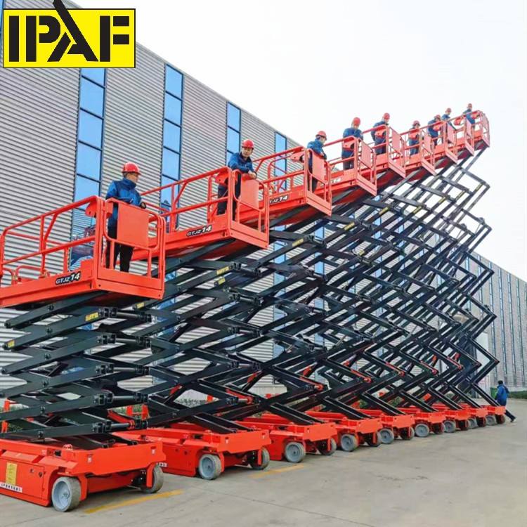 ลิฟต์ยกขากรรไกรระบบไฮดรอลิก1000กก. เคลื่อนที่แบบไม่เคลื่อนที่ด้วยตนเอง5ม. 8ม. 11ม. 12ม. 14ม. 14ม.