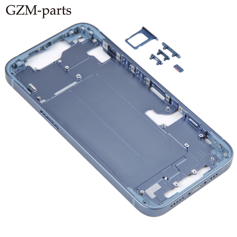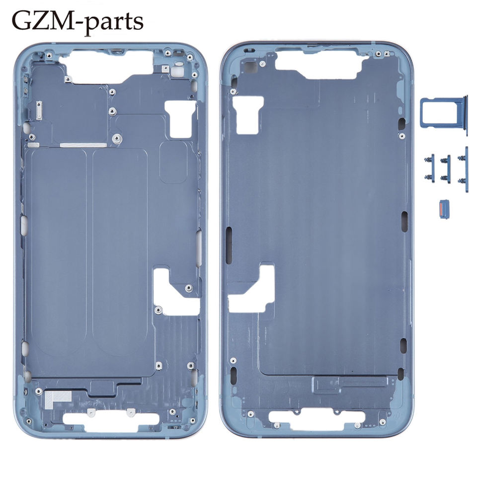 กรอบตัวเรือนโทรศัพท์มือถือพร้อมปุ่มด้านข้างและถาดใส่ซิมการ์ดสำหรับเปลี่ยน iPhone 14