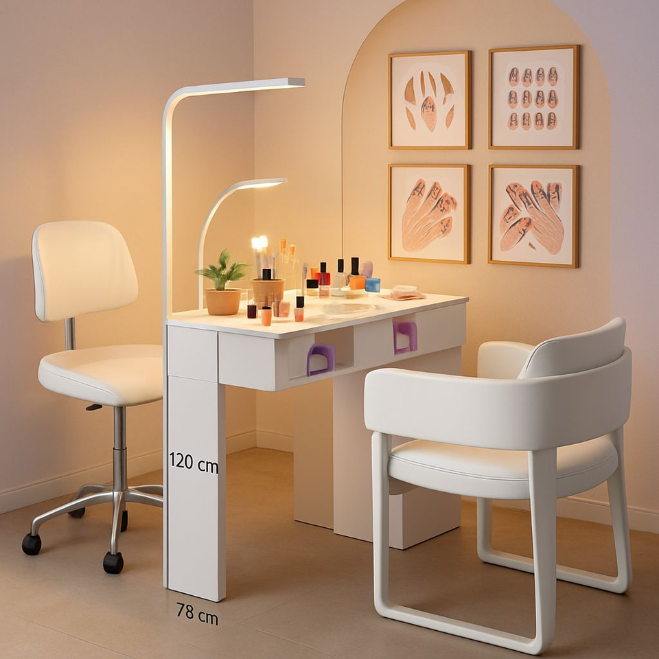 Mobile Pink Manicure Table Set with Pedicure Chair All in One Nail Station w/ Sink & Equipment Racks