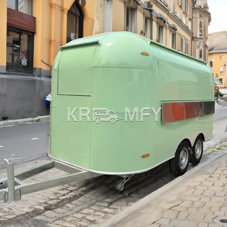 รถขายอาหารเคลื่อนที่สแตนเลสพร้อมครัวครบชุดสำหรับขายพิซซ่า บาร์บีคิว ฮอทดอก ขนม ลูกอม และของว่างต่างๆ
