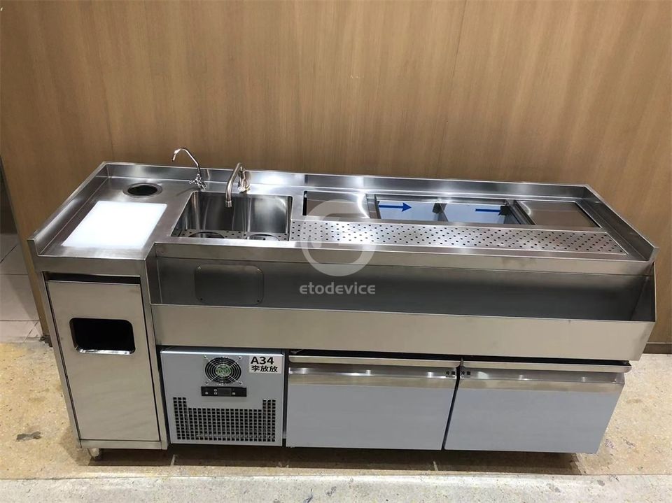 เคาน์เตอร์บาร์สลัดเคลื่อนที่มือสอง พร้อมอุปกรณ์สำหรับแสดงเครื่องดื่มเย็น