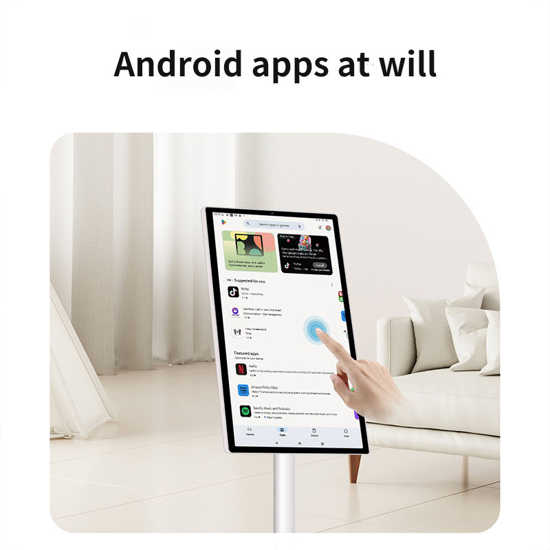 จอแสดงผลเคลื่อนที่แบบสัมผัสไร้สาย ระบบแอนดรอยด์ 4K สำหรับใช้ในห้างสรรพสินค้าและลิฟต์