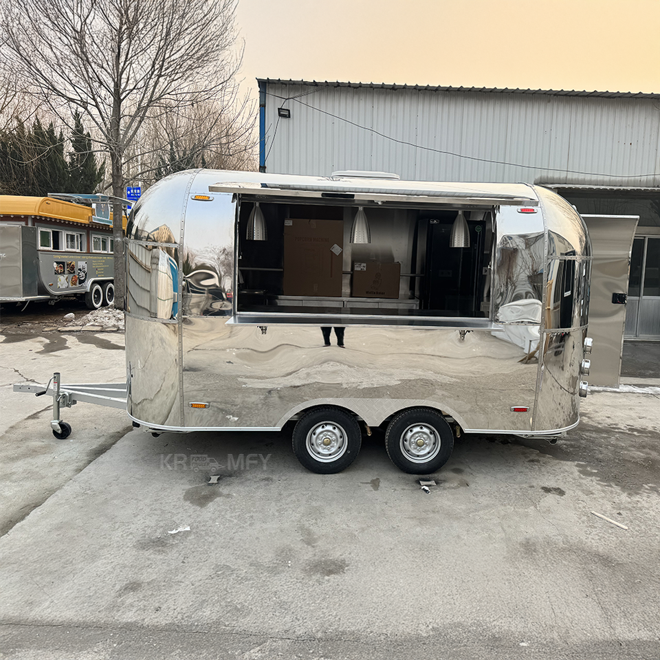 รถขายอาหารเคลื่อนที่สแตนเลสพร้อมครัวครบชุดสำหรับขายขนมและของทอด ทนทานต่อการเกิดสนิม ใช้งานได้ยาวนาน