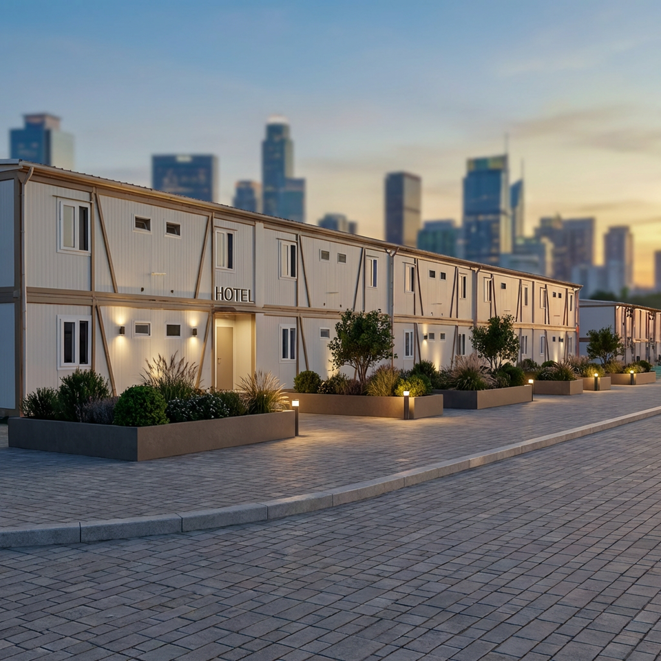 โรงแรม, วิลล่า, บ้านคอนเทนเนอร์ที่อยู่อาศัย, บ้านภาชนะ, อาคารสำนักงาน, โรงเรียน, โกดัง
