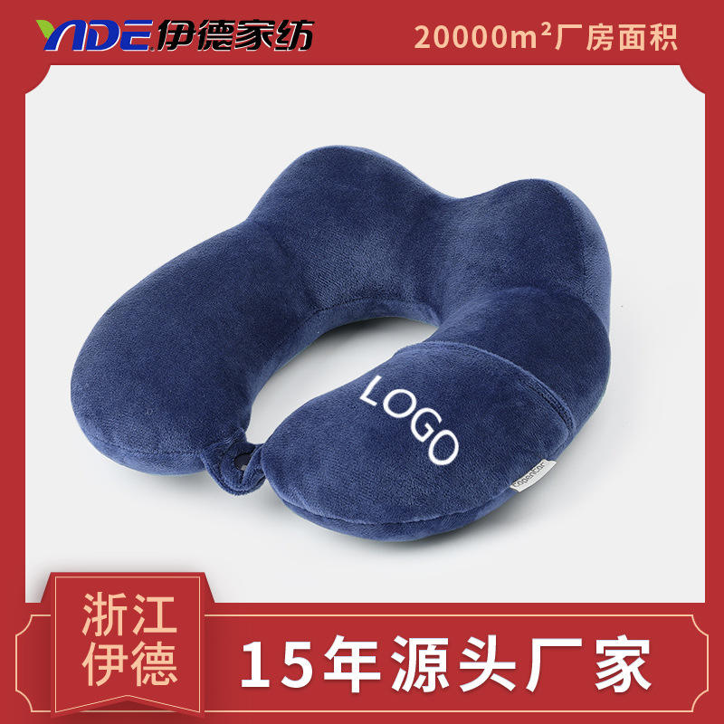 หมอนรองคอรูปตัวยู Mobilier สีฟ้า หมอนเดินทางสำหรับผู้ใหญ่ ซักได้ รองรับต้นคออย่างสบายด้วยดีไซน์แบบหลังคามอญามสองชั้น