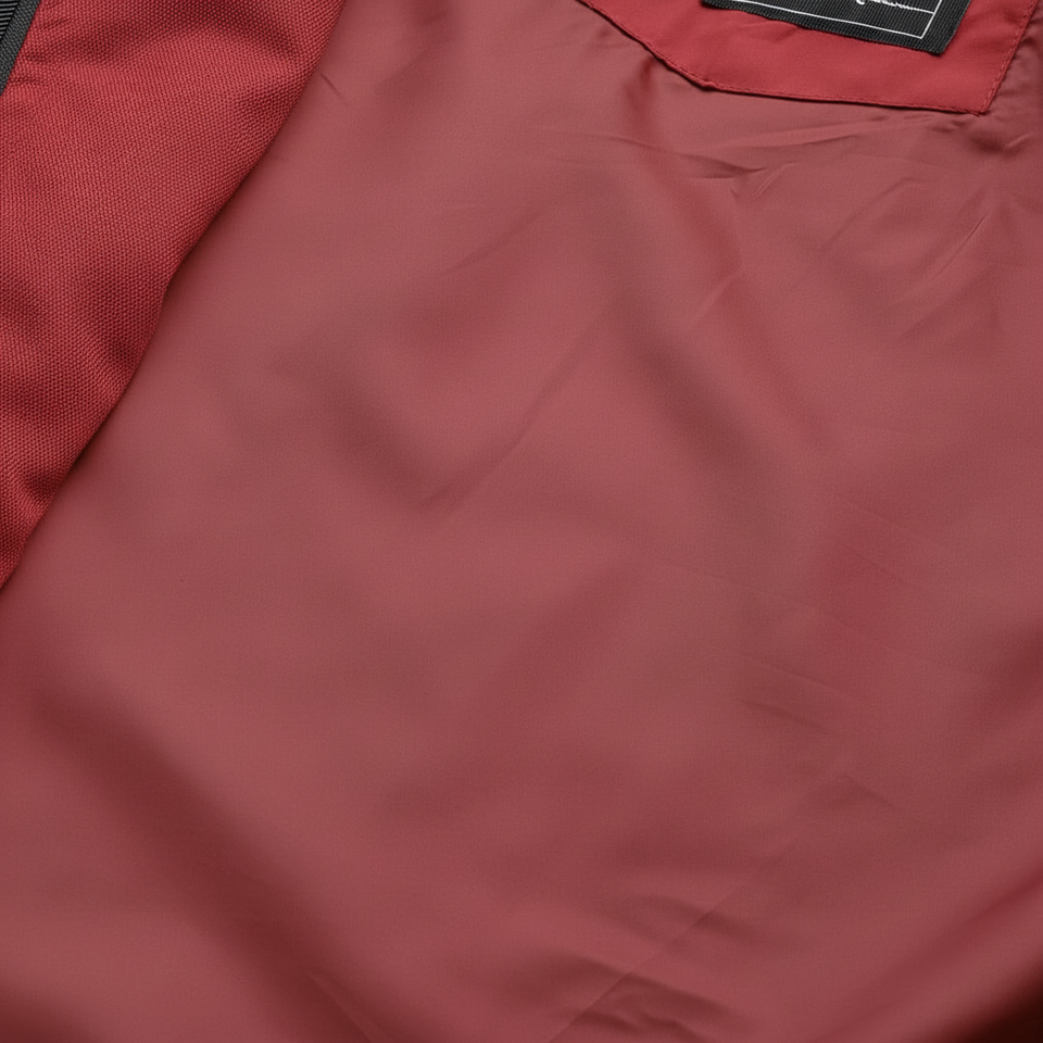 คอเสื้อแบบปลอม, กระเป๋า 3 ช่อง, ปิดด้วยซิป, แขนยาว, ลายปัก, ชายเสื้อตรง, และผ้าโพลีเอสเตอร์