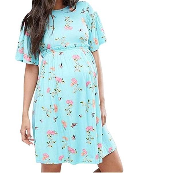 ชุดเดรสสำหรับหญิงตั้งครรภ์แขนยาวคอลึก