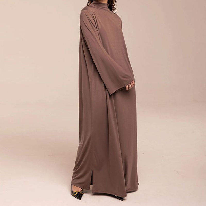 อาบายะห์คอเต่าแบบเรียบหรู สไตล์มุสลิม สั่งทำได้ ขายส่ง อาบายะห์ผู้หญิง สีพื้น แบบเรียบง่าย
