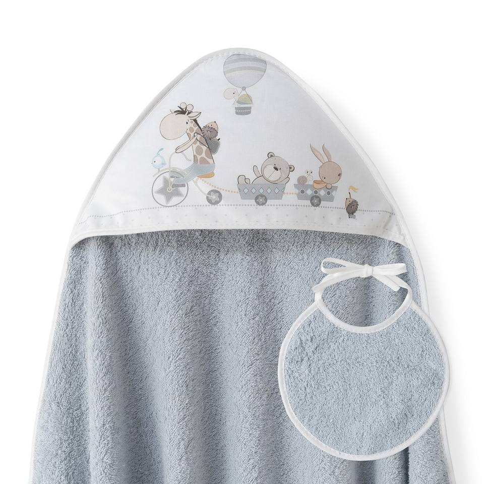 ผ้าเช็ดตัวอาบน้ำ Mod Jirafa-Bicicleta+ผ้ากันเปื้อนเด็ก 1X1 MT ผ้าฝ้ายป้องกันการแพ้ ลายการ์ตูน สำหรับเด็กแรกเกิด สีเทา สำหรับใช้ในบ้านและห้องน้ำ