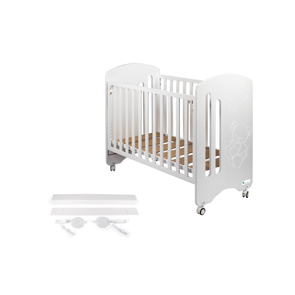 Mod. Lovely White Cot Bed for Mattress 60X120 Includes Co-Sleeping Kit