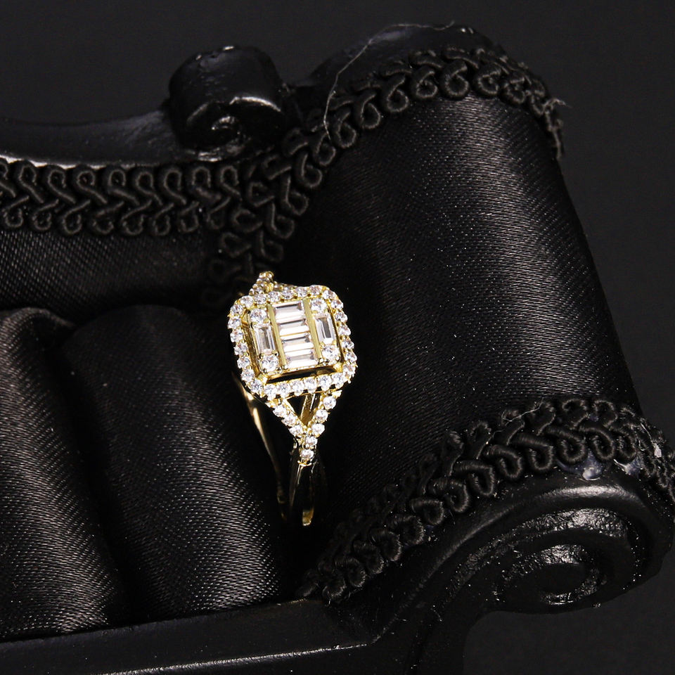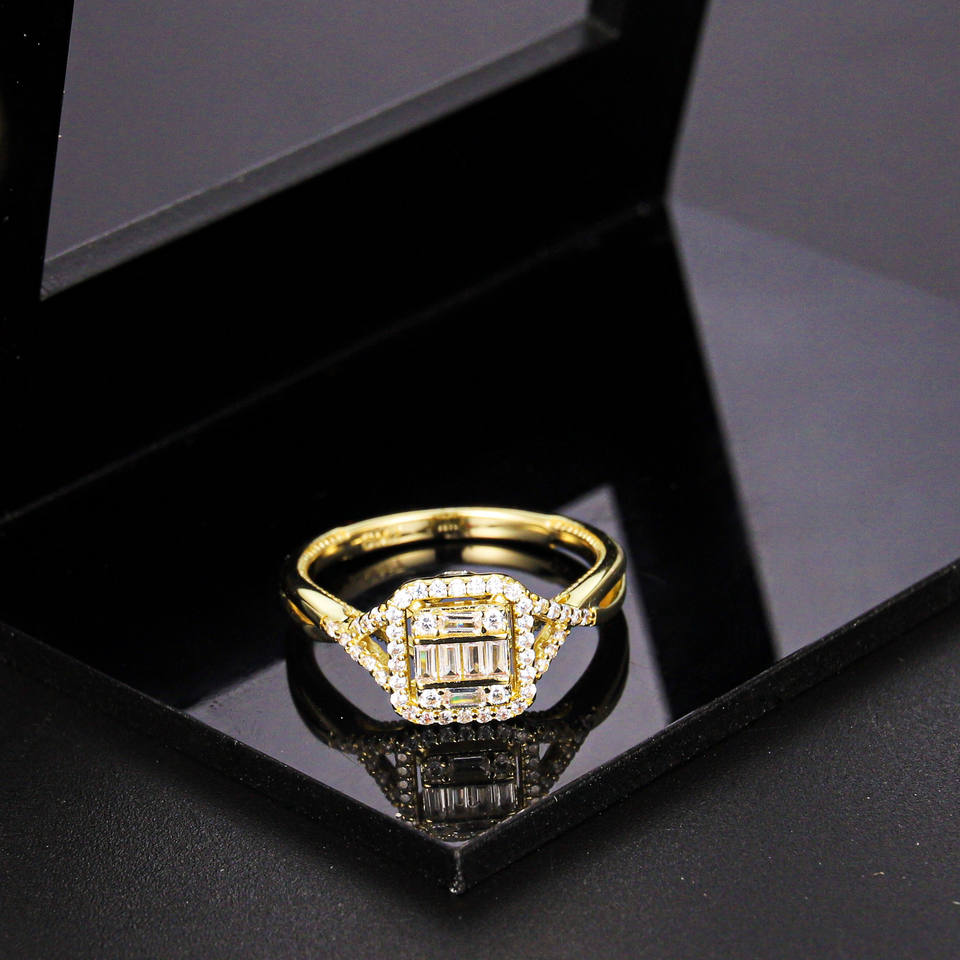 แหวนหมั้นผู้หญิงชุบทอง14k ประดับเพทายสไตล์คลาสสิกแหวนแบบสั่งทำดีไซน์ใหม่