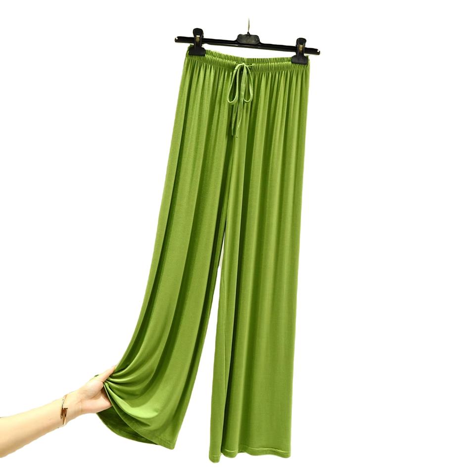 กางเกงขาตรงเอวสูงของผู้หญิงแบบโมดอลกางเกงทรงหลวมแบบลำลองระบายอากาศได้ดีดีไซน์ผ้าเย็นเอวยางยืดเหมาะกับฤดูร้อน