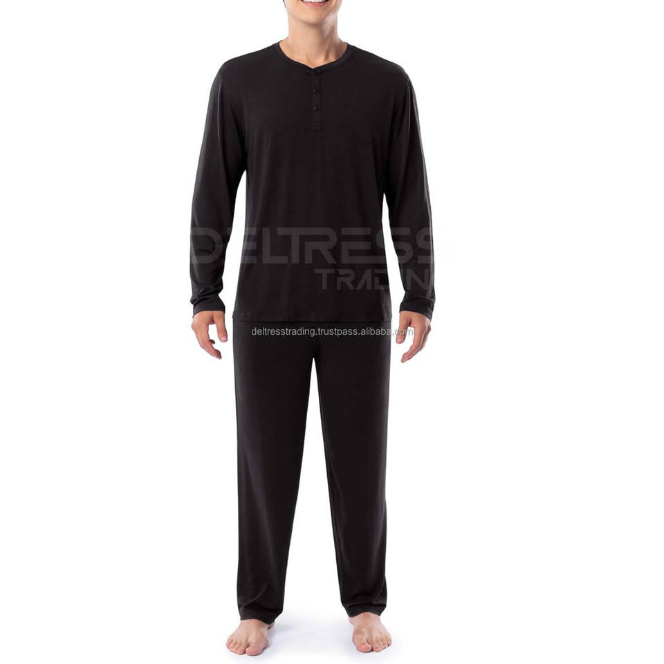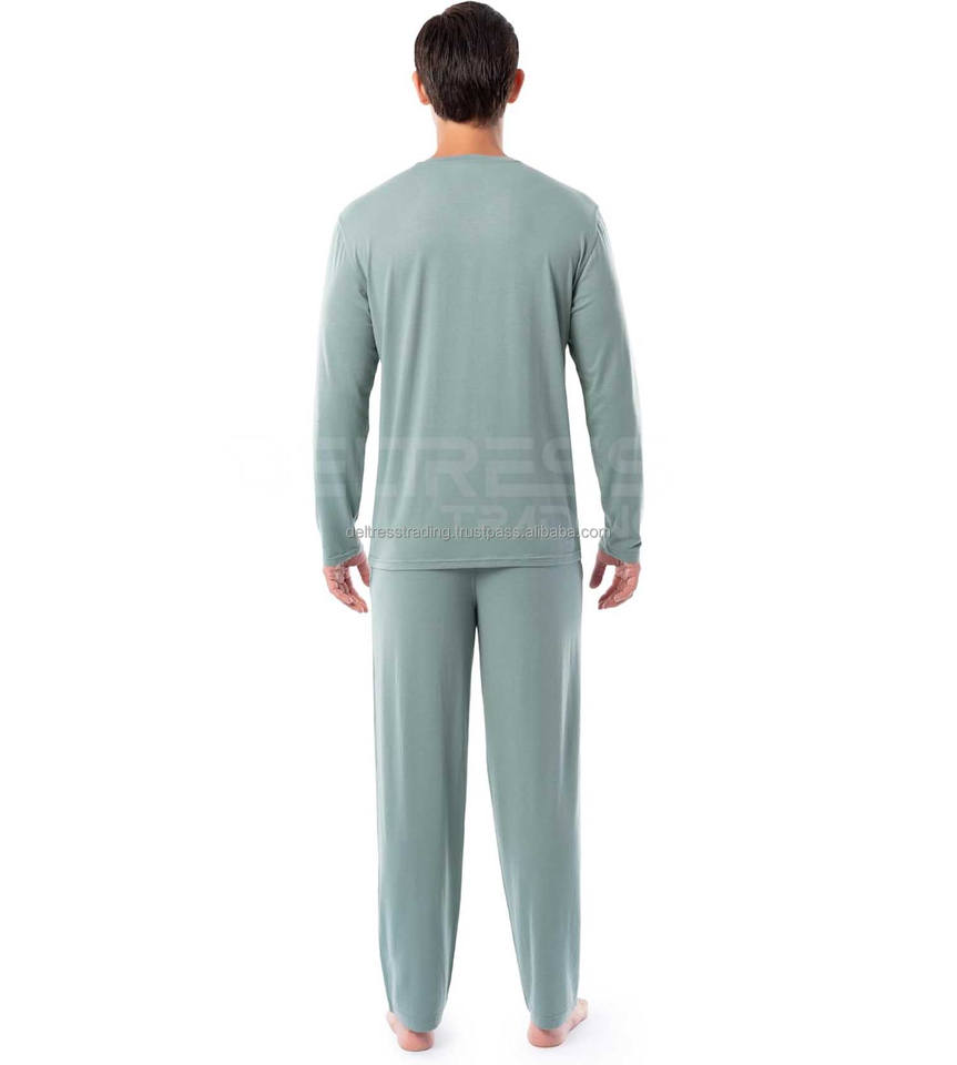 ชุดนอนโมดอลสำหรับผู้ชายเสื้อคลุมอาบน้ำคอกลมแขนยาว2ชิ้น