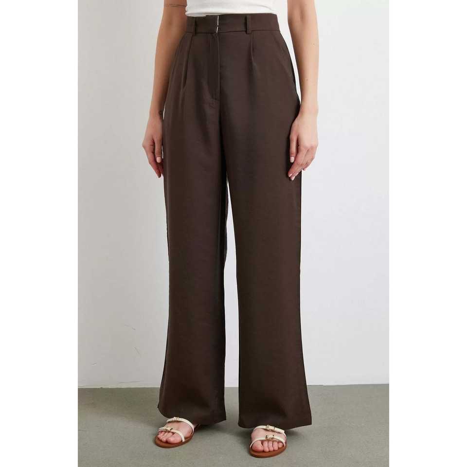 กางเกงขายาวทรง Palazzo เอวสูง สีกาแฟ ผ้ากันยับ สำหรับผู้หญิง