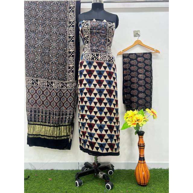ผ้าไหมโมดอลสำหรับชุดผู้หญิง ย้อมสีธรรมชาติ พิมพ์ลายบล็อกด้วยมือ ลายดอกไม้แบบอัจรัค ทรงเอไลน์ สำหรับงานทางการ ระบายอากาศได้ดี ป้องกันรอยยับ ป้องกันไฟฟ้าสถิต