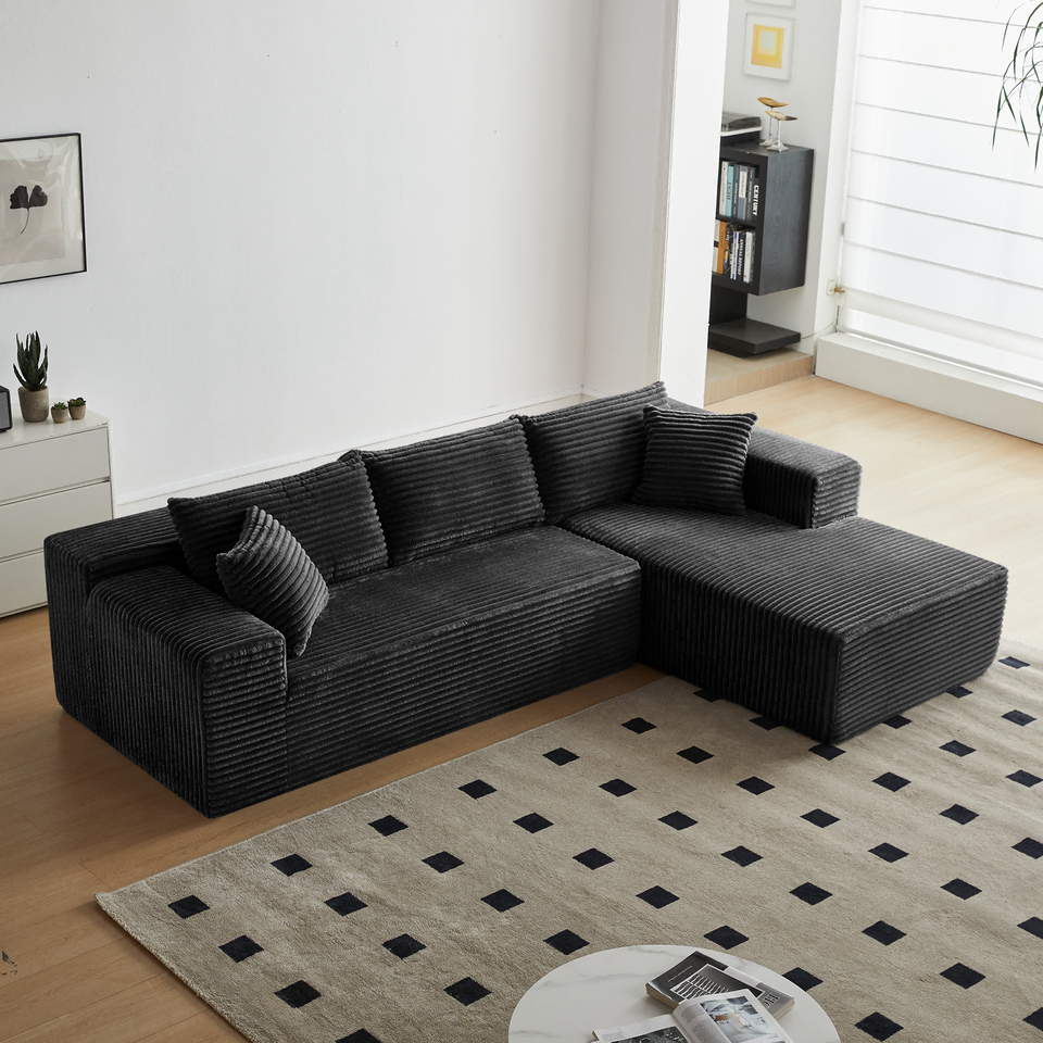 โซฟาโมดูลาร์รูปตัวแอล รุ่นโมดาซี S030 ผ้าเชอร์ปาและผ้าฟลานเนล หุ้มเบาะนุ่ม 3 ที่นั่ง เหมาะสำหรับห้องนั่งเล่นในอพาร์ทเมนต์หรือวิลล่า
