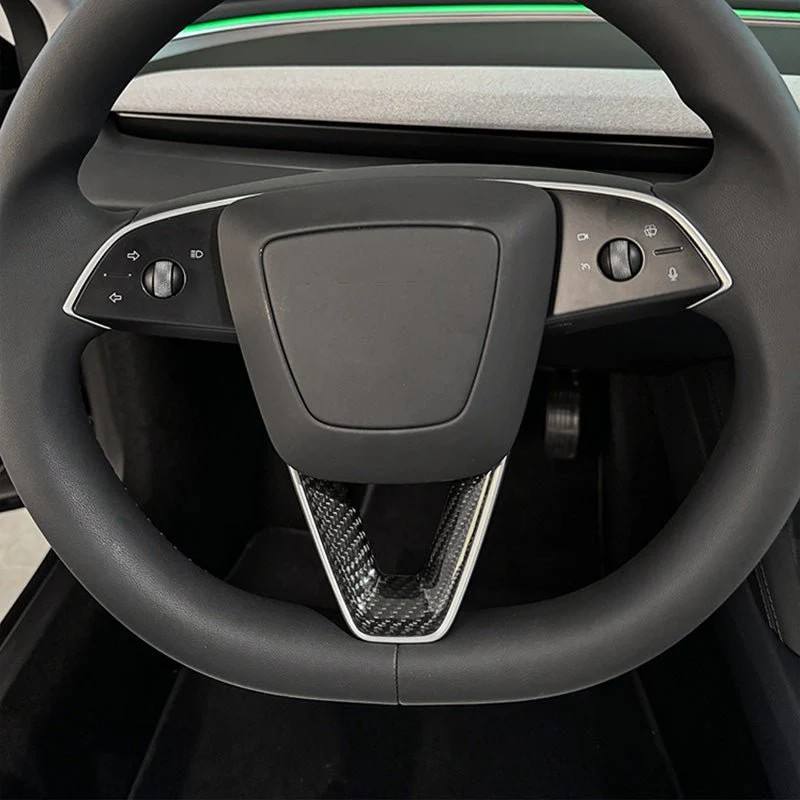 ฝาครอบพวงมาลัยคาร์บอนแห้งแบบยูนิเวอร์แซลสำหรับรถยนต์รุ่น Model 3 Highland พร้อมช่องใส่ถุงลมนิรภัย อุปกรณ์ตกแต่งภายในรถยนต์