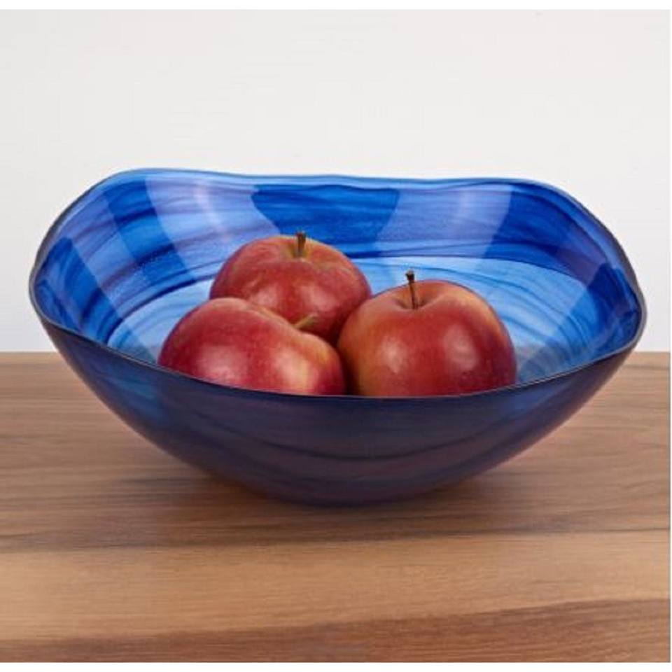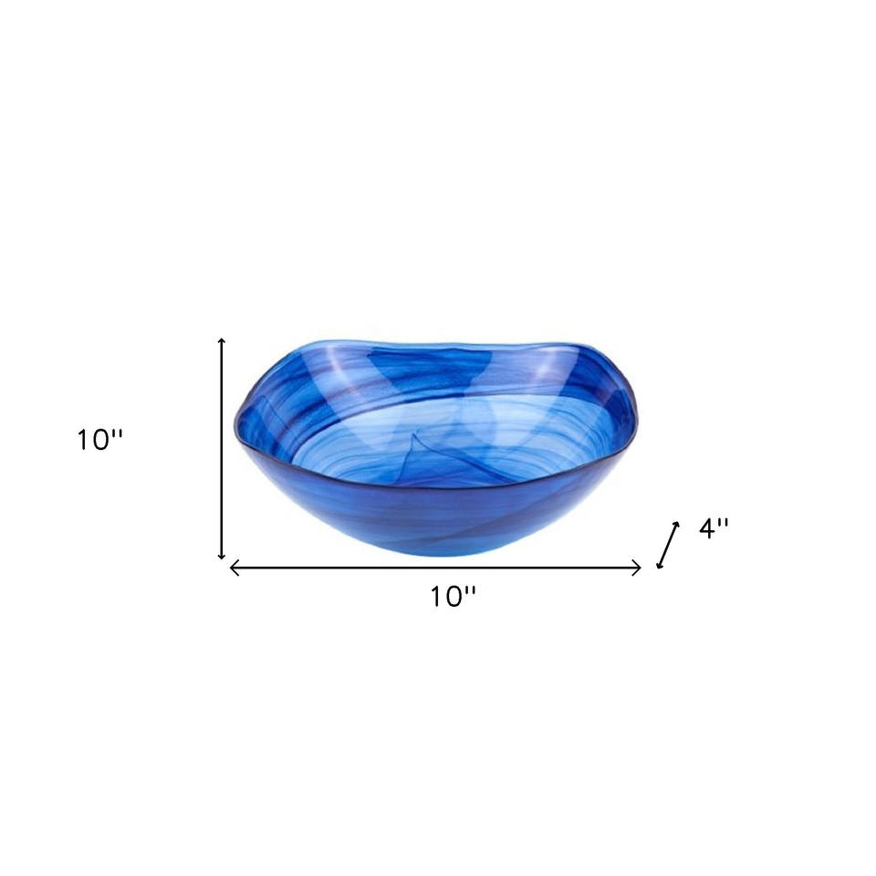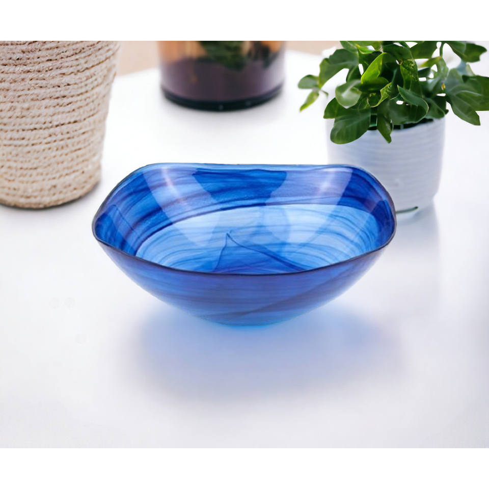 Modern 10\" HMS Crystal Glass Mixing Bowl Soft Square Blue Swirl Design Creative and Sustainable Tableware