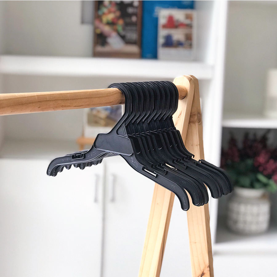 ไม้แขวนเสื้อแบบแบน 25 ซม. ผลิตจากพลาสติก PP ฉีดขึ้นรูป ป้องกันการลื่น ชุด 10 ชิ้น รุ่นโมเดิร์น สำหรับจัดระเบียบเสื้อผ้า ประหยัดพื้นที่ในตู้เสื้อผ้า