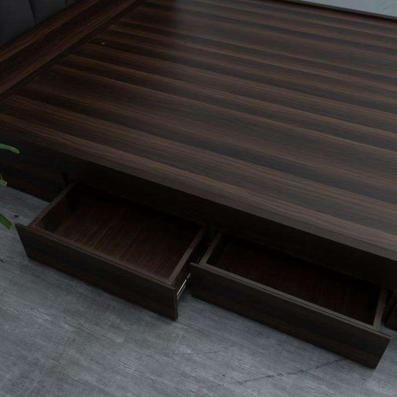 เตียงนอนไม้100% ทันสมัยพร้อมหัวเตียงและลิ้นชักหุ้มเบาะดีไซน์อัจฉริยะไม่ต้องเสียภาษี