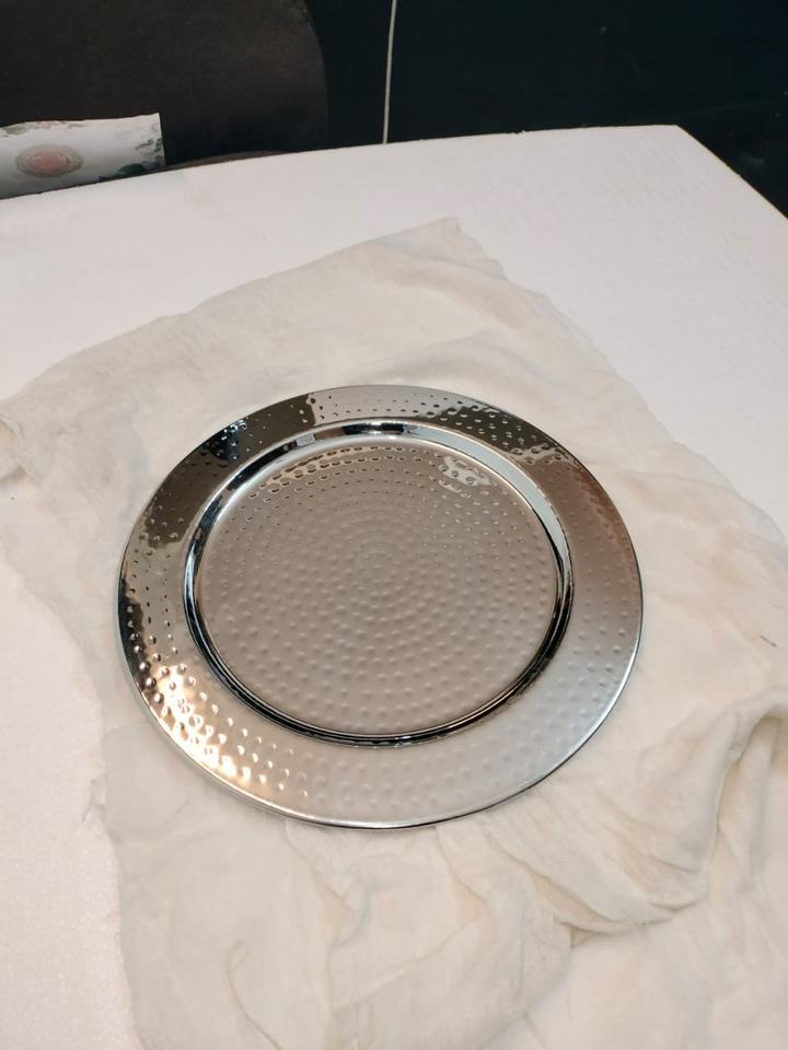 จานรองอาหารทรงกลมสีเงินแบบตอกลาย ขนาด 13 นิ้ว สไตล์โมเดิร์น สำหรับงานจัดเลี้ยงระดับไฮเอนด์และร้านอาหารหรู