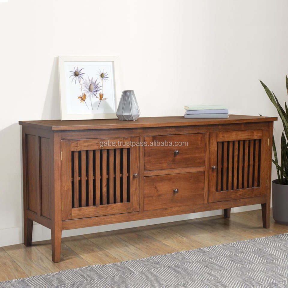 ตู้ลิ้นชักไม้สักเนื้อแข็งขนาด180ซม. ทันสมัยมี2ประตูและ2ลิ้นชักสีน้ำตาลสำหรับรับประทานอาหารเฟอร์นิเจอร์ภายในบ้าน