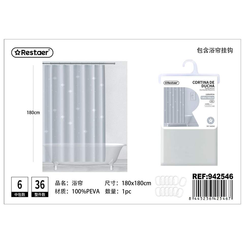ม่านอาบน้ำ180x180ซม. ทันสมัย3D อุปกรณ์ห้องน้ำดิจิตอล-รวมตะขอทำจากพลาสติกโพลีเอสเตอร์ EVA สำหรับโรงแรม