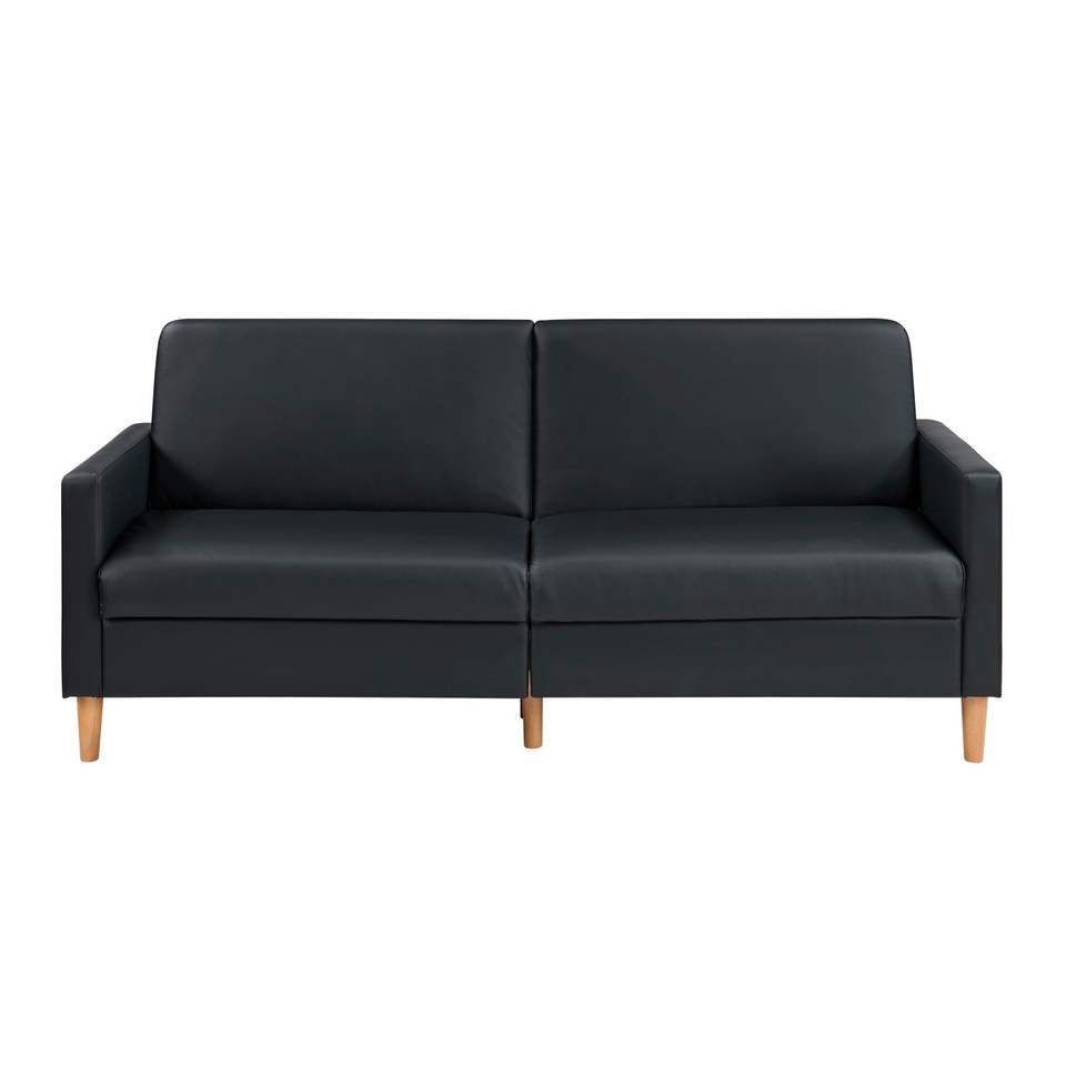Modern 1pc Elegant Lounger Comfort Sleeper Black Faux Leather Upholstery Sofa Bed with Durable Plywood Frame