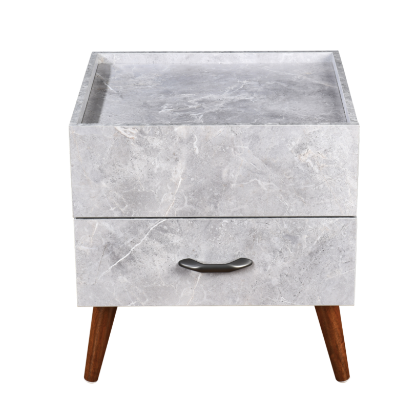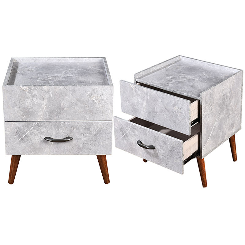โต๊ะข้างเตียงแบบ2ลิ้นชักทันสมัยขาตั้งข้างเตียงตกแต่งด้วยหินอ่อนพร้อมขาไม้เนื้อแข็ง