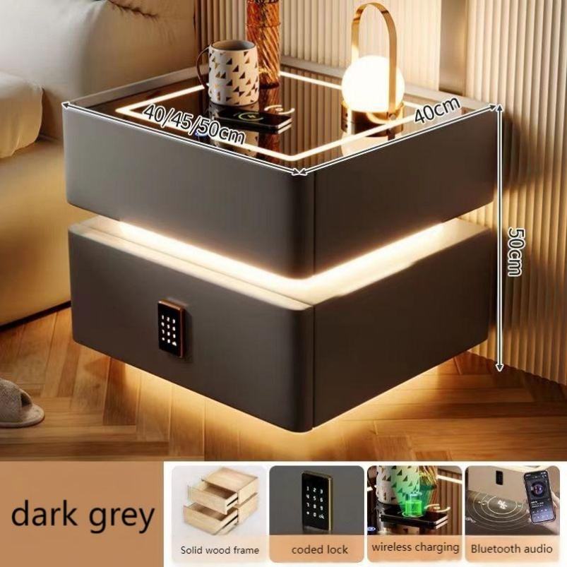 Description:Wireless USB Charging LED Lights 2 Drawer Storage Smart Nightstand