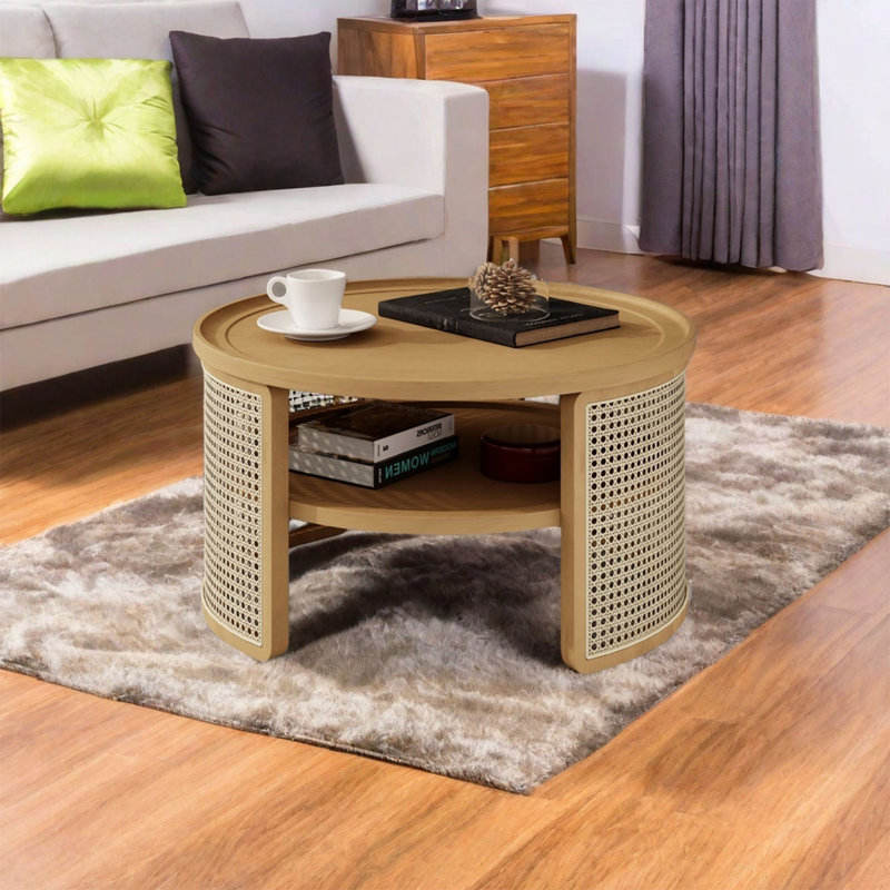 โต๊ะกาแฟหวายสไตล์โบฮีเมียนโต๊ะกลางทำจากไม้ทรงกลมสำหรับห้องนั่งเล่น2-Tiered ทันสมัย