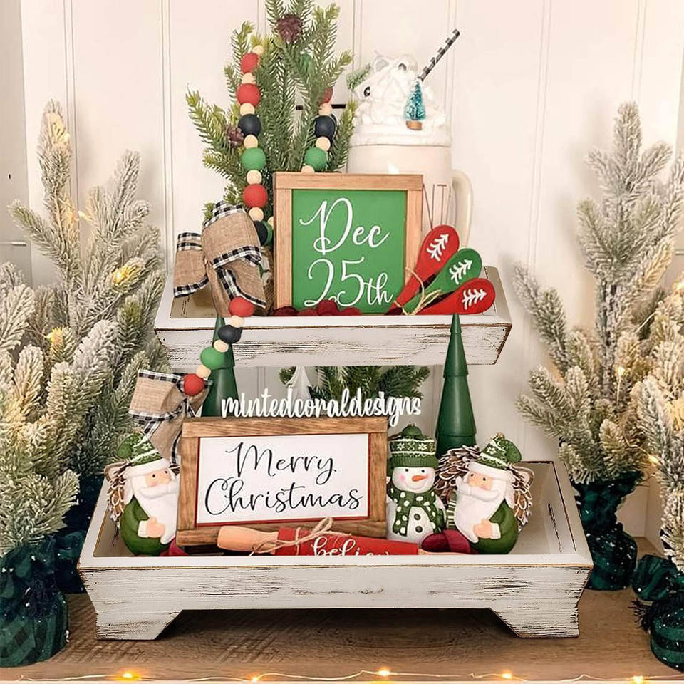 ถาดไม้2-Tiered ทันสมัยสำหรับวางคัพเค้กถาดโชว์ผลไม้ลดกระหน่ำตกแต่งบ้านไร่สำหรับห้องครัวห้องนอนห้องครัว