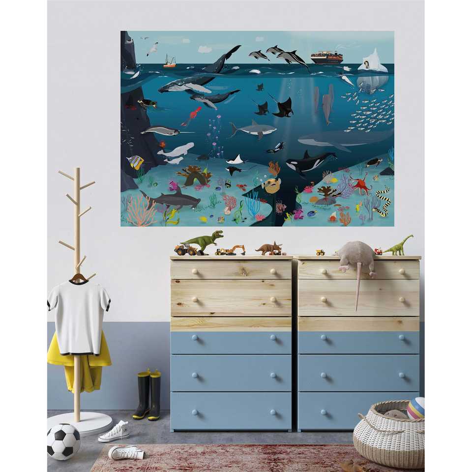 สติ๊กเกอร์ติดผนังลายโลกใต้น้ำสำหรับเด็ก ขนาด 140 x 100 ซม. ทำจากกระดาษหนา 250 กรัม รุ่นใหม่